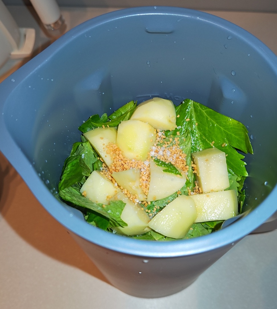 ジャガイモ、セロリと葉っぱ、玉ねぎと牛乳と調味料