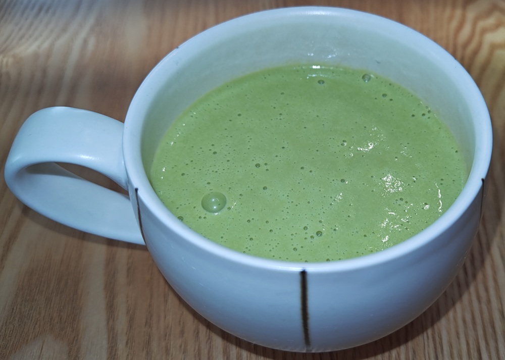 出来上がったスープは狙い通りにセロリの葉の色の緑色が強い出来上がりです。